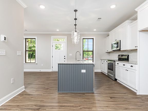 This quaint Colonial community is in the heart of Opelika and is less than a mile from shops and restaurants in the historic downtown. The brick exterior will have charming creeping fig with grand steps leading into the covered entry. Just inside the front door you'll be greeted by a brick accent wall in the breakfast room and a barn door on the walk-in pantry. The kitchen has a large island and ample cabinet storage. The great room is large for entertaining with a fireplace as the star. From the great room, the stairs lead to the second floor laundry room. The master bathroom has a large walk-in tiled shower with bench and soap nook. The secondary bathroom has a tub/shower combination. Both bedrooms have great light and large walk-in closets. Each townhome will have a courtyard at the back of the home, with a brick wall at the rear of the yard and a wrought iron fence separating each unit. Receive $5,000 towards closing costs OR blinds and a refrigerator when using a preferred lender!