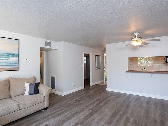 Stop renting and own your own home. Located in the Newporter Condominium Complex this 2 bedroom 1 bathroom ground level condo is move-in ready. The condo has been updated with contemporary flooring, tall baseboards and two-tone paint. The spacious floor plan provides an open concept living room/dining room combo and includes a breakfast bar. Both bedrooms are roomy with large double closets. The ample sized bathroom has a double sink vanity with even more cabinet storage and a shower/tub combo. The bathroom is conveniently located between the two bedrooms to offer access from each room. This condo is an end unit which provides privacy and is conveniently located next to the laundry facility. The kitchen offers white cabinets an electric stove/oven combination, microwave and tile counters for a bright look. The patio area is bright, roomy and has tall fencing for privacy. Perfect for lounging or to BBQ with friends. The condominium complex features a centrally located sparkling pool for your enjoyment during the summer months.