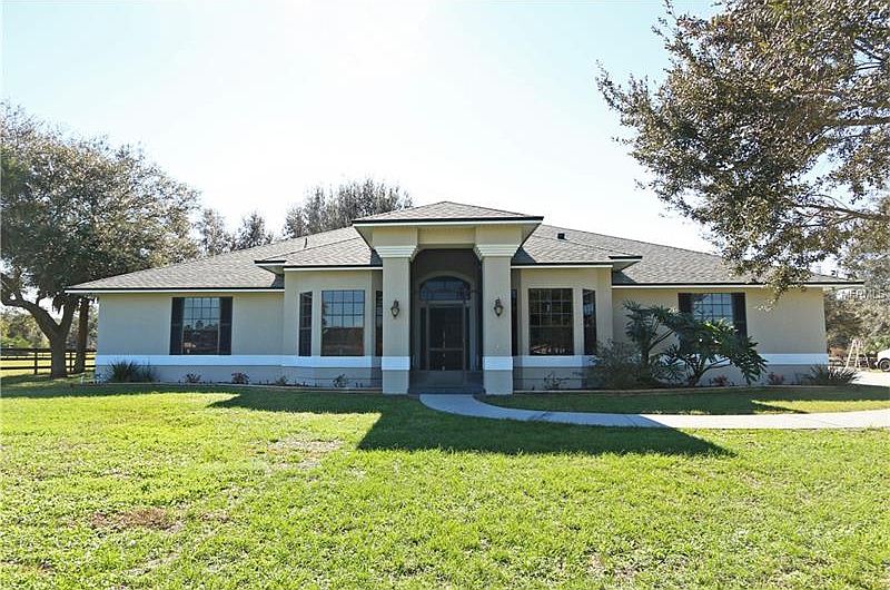 Custom home on 5 acres with detached garage & barn. DeLorenzo home with over-sized 2 car garage & 420 sq. ft. back porch + 1,200 sq. ft. 3 car garage + 1,296 sq ft barn. 5,184 total sq ft not including 4 stall barn with tack room. Complete feature list & builder''s plans are available. Excellent property for horses with exterior fencing & sub-divided interior fencing. Roof permitted 11/08 - 7 years old. New Exterior paint. Large concrete parking pad. 2011 stainless appliances in Kitchen including dishwasher, refrigerator, stove, & microwave. Gorgeous hardwood floors in family, dining, & living in 2013. Efficient HVAC in 2007 providing lower energy bills. Main well equipment located inside detached garage. Everything has been very well cared for & is being sold by original owner. Properties like this one rarely come up for sale. The land itself is excellent - see the many photos online. No HOA. Top rated local public schools. "The country" with short drive to Oviedo; drive to UCF, Waterford Lakes Town Center area or freeways is 25 to 30 minutes. East Seminole County has some great trails & parks which are nearby. Second master bedroom has wet bar area, separate bath, walk-in close, & direct access to back porch/patio. Off the kitchen & breakfast is a large laundry room complete with a good number of cabinets. The trees around the home have been properly cared for. From the kitchen & breakfast area one can look out back to the property & barn. Detached garage has power & water.