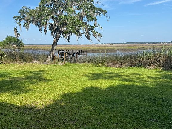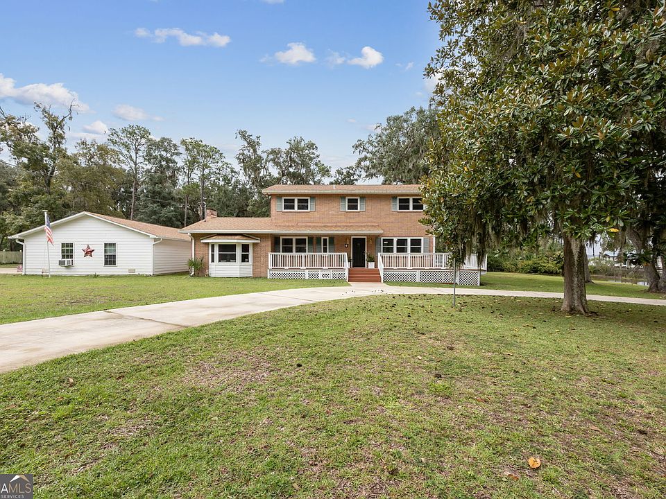 This property presents a unique opportunity to be in downtown St. Marys, on the water, have almost an acre of land and drive your golf cart to shopping, restaurants and the waterfront. The sunset views from the wraparound deck and the dock are beautiful year round. This all brick constructed home has a wrap around porch on three sides, a recently remodeled kitchen, a 10 x 12 laundry room, original hardwood floors, den with a wood burning fireplace, eat in kitchen, powder room, spacious dining room and living room with a dynamite view. Upstairs, there's the primary suite, three guest bedrooms and a bath room. Alpha foundation has a transferrable life guarantee on the complete foundation. In addition, there is a newer concrete circular driveway detached oversize 3 car garage can store your cars, golf cart, boat and anything else you might need. We left room in the price for you to make this your waterfront oasis. Call to see this opportunity before it's gone.