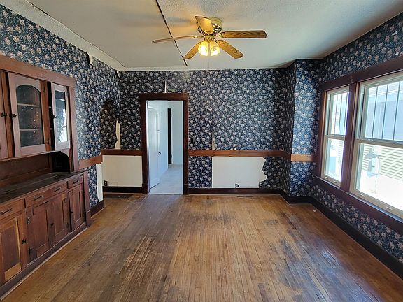 Brick 1.5 story bungalow offers 3 - 4 bedrooms, 1.5 bathrooms, spacious living room and dining room, detached garage, fenced backyard, full unfinished basement, and cute front porch!