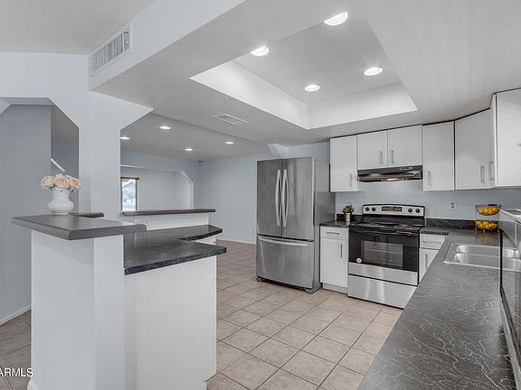No HOA! This charming home in Mesa features 3 bedrooms, 2 baths, & a 2-car garage complete with cabinets and a water softener! Enjoy a refreshing dip in the sparkling diving pool, recently resurfaced with stunning Caribbean blue Pebble. The bright, open kitchen boasts white cabinetry, a breakfast bar, & a formal dining space. The master suite includes sliding doors to the pool, a walk-in closet, and a cozy bonus room, adding an extra 200 sq. ft. Secondary bedrooms are generously sized with ample closet space. The low-maintenance backyard offers a covered patio, mature trees, and a large pool, perfect for relaxing or entertaining. This home is centrally located near the 60 freeway, schools, shopping, and dining, offering both convenience and comfort. Don't miss this opportunity!