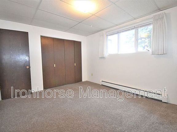 Large 2 bedroom 1 bath apartment in the heart of town! This garden-level apartment is close to everything! Amenities include dishwasher, AC, shared (free to use) laundry on every floor and one assigned off-street parking spot with cold weather plug-in. No smoking. One pet negotiable. Breed, weight and age restrictions apply. Please call for details. Owner pays HEAT, water, sewer, trash, and lawn maintenance Tenant pays electric Rent: 1,400* Deposit: 1,500 *(Rent is based on one adult per bedroom in the unit.) *($30/month Resident Benefit Package in addition to rent.) Application: $27 per adult applicant Available: NOW Lease Term: perspective tenant would get to choose when their lease ends in either May, June or July of 2026 No smoking/vaping of anything within 25 feet of the building Proof of renters insurance required upon lease signing Credit, Criminal & Rental History: Ironhorse Management runs a credit check, criminal background check and verifies rental references on all occupants over the age of 18. Applicants should have good credit and good rental history. If an applicant has insufficient credit or rental history then a cosigner may be required. Applicants with bad credit or bad rental history will be denied (no cosigner accepted). Amenities: OffSt Parking, Common washer/dryer on every floor