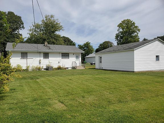 Cozy 3-bedroom ranch will full basement and a 24x24 detached garage with concrete floor. Living room has oversized picture window and laminate floor. The 3 main floor bedrooms have original hardwood floors. Home has a full bath on main floor with laundry shoot. Range, Refrigerator, washer & dryer included. Pool table in basement stays. Home sets on a large city lot 75x140.