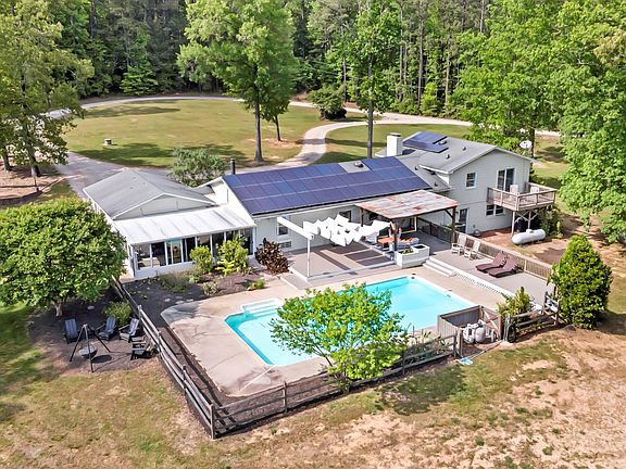 Here is the once in a lifetime opportunity you have been searching for! You have the opportunity to own this beautiful open 6.43 acres ''Cleared'' piece of property right in the middle of the prime up-and-coming growth area in Apex, Wake County, and backing up to U.S. Army Corps of Engineers - Jordan Lake Reservoir/Nature Preserve. This charming home built in 1971 has approximately 2900 sqft , 4 Bedrooms, 3 Full baths that sits on 5.69 acres in Wake County side and .74 acres in the Chatham County and assigned to the best Wake County Schools - (White Oak Elem, Mills Park Middle and Green Level High). Your family can enjoy all the beauty of living on this vast stretch of grassy land with space for grazing animals, gardening, etc. Or be like Amy, the owner, who has a passion for growing flowers in the ready-to-go Enclosed Flower Farm/Hoop House. You also have plenty of room to store your boat, trailers, RV, etc in the detached garage/Workshop. Your family can enjoy memorable times in the backyard riding your ATV's/4-Wheelers or simply jumping in the Fresh water pool. You also have access to the American Tobacco Trail located just 4 minutes away. Save Money!! NO HOA fees, No City Taxes, NO Deed restrictions/covenants. Under County ordinance, the annual County tax is only approx. $4200. ($4066 to Wake + $92.00) Improvements include - 11.5 Kw of energy efficient solar panels, a new roof in 2010, new HVAC in 2022, Dishwasher replaced in 2019, New well pump/ ‎Kinetico Water Softener 2018. Septic tank cleaned out in 2023, Chicken Coop, 6+ Cleared acreage in 2014, Invisible Fence (dog fence - buried wire) that encloses the entire property. There is a bulk service Internet & Cable agreement (High speed internet) of $800/year with Spectrum and $100/year shared road maintenance fund (informal) for the 9 neighbors around. Property also has excellent potential for building your very own dream home by installing an above the ground drip Septic system with proper State Permits. . The property is zoned R-80W. (Max. density = 0.50 dwelling unit/acre). Someday, maybe the neighboring homeowners and you can ban together and get annexed/rezoned etc., once approved by Town of Apex. Based on the location, market trends, and development projects in and around this beautiful home this piece of property can also be potential long term investment opportunity. Nearby is future Approved Single-Family development (Castleberry Reserve) consisting of approximately 103.42 acres off Castleberry Road with around 148 - 170 lots. Other nearby residential neighborhoods includes Castleberry Estates to the east, and Lake Castleberry to the north. Close to and Easy access I-540 interchange, RTP, RDU Airport, Beaver Creek Commons Retail Shopping, Costco and many other daily lifestyle conveniences. I invite your call, to share more details on this beautiful property.