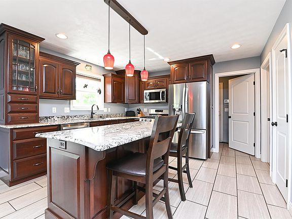 Custom-built 4 bedroom, 3.5 bathroom 2 story home with over 3,900 finished sqft. The main floor offers Acacia wood floors, a fully applianced kitchen with Helmuth Custom cabinets, and granite countertops. Lovely 14 x 13 sunroom, a formal dining room adjacent to the large family room with vaulted ceilings. The second floor offers a massive master suite with a sitting room, and two closets, one of which is 23 feet long—a large master bathroom with whirlpool tub, shower, and private stool. The upper level also offers 3 additional bedrooms, a full bathroom, and laundry room. Other mentions- LG suite appliances, finished basement with storage room. Tons of storage throughout the house. Heated 3-stall garage with dog pen which leads outside to another fenced area for your pups. Pine trees along a fully fenced backyard offering great privacy. Oh, and the garage is wired for EV charging. All window treatments stay, and Spring Green lawn care paid for through 2024. Call your Realtor asap for a private showing.