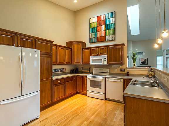 Enjoy CAREFREE living in this immaculately maintained 2BR, 2BA ranch side-by-side villa. TONS of NATURAL LIGHT drenches this end unit thru an abundance of windows, skylights, & OPEN flr plan! Everything you need is on 1 level including the Laundry Rm. BEAUTIFUL newly renovated Kitchen featuring granite counters, breakfast bar, backsplash, cherry cabinetry, SS KitchenAid appls, under cabinet lighting, pullout shelves, pantry, & oak engineered flooring. SPACIOUS Master Suite w/ full Bath w/ dual vanity, soaring ceilings, & walk-in closet. Additional Bedrm on main level along w/ another full Bath. Relax & enjoy the great views of the wooded greenspace adjacent to the property or your own herb garden on the ADORABLE covered porch, NEWLY stained backyard deck, or stay inside in the COZY sunrm! HUGE daylight Bsmt that is ready for future finish w/ bathrm rough in. 2 car attached gar. NEW roof, gutters & skylights in 2018, gar door & smart opener, central vac, smart thermostat, & TMI warr!