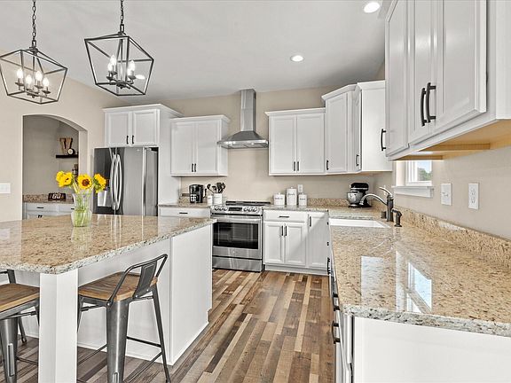 Enjoy the best of everything, New Construction home by Harpe Builders (3BED 2.5BA) on nearly an acre (0.86) w/attached fully insulated garage equivalent to an outbuilding (5 CAR 1350 Sq Ft) w/subpanel & heater! Home boasts immediate curb appeal w/custom interior finishes. Entertain in open concept layout w/KIT featuring granite counters, large island w/built-in microwave, SS appliances, fireclay farmhouse sink & pantry. Dinette offers serene views of yard w/sliding doors out to concrete patio. Gather in large LR w/GFP & hidden cable chase for electronic wiring organization. Main level Flex room provides multiple uses w/barn doors as a DR, home office, or play room. PBR allows plenty of space to unwind w/private dual vanity sinks, granite counters, ceramic tile WIS & WIC. Don't miss this!