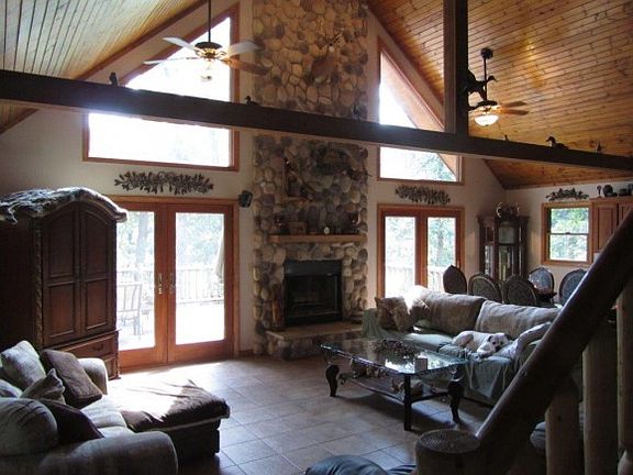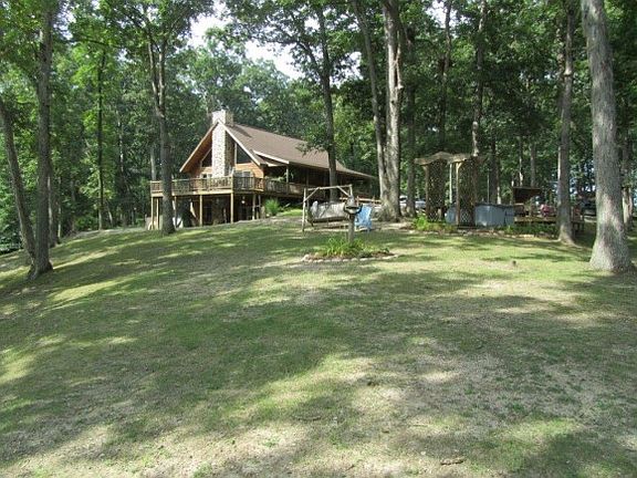 THE PERFECT LAKE SETTING!!! TWO LOTS and a Beautiful lake home with over 500' of water frontage! VERY PRIVATE AND SECLUDED!!! NO OTHER HOMES ON THIS POINT!!! Fantastic views, and deep water!!! Turn into the long private drive and wind thru the trees to this magnificent lake house. From the Lake...it is picture perfect...and the place you've always dreamed of. Inside the house you will find a wide open floor plan with a massive stone fireplace flanked by a full wall of windows to maximize the magnificent view. The soaring ceilings and exposed stairway complete the "lodge" ambiance. The main level includes two bedrooms and a bath. The BIG upstairs loft is currently used as a bedroom and an office. The full walkout basement has a 9' ceiling and is plumbed for a bath. Outside there is a covered porch and a giant deck. AND the additional detached 20x24 deck will host your fun times and has a covered area for a TV. Enjoy the Lake view, and giant trees as you listen to music, or watch your favorite TV show. There is a boathouse and plenty of private area to swim and play!!! Built in 2014, this home has solid oak doors and high quality construction. There are also 2 sheds that remain. PLUS 2 GOLF COURSES ABOUT 5 MINUTES AWAY!!!If you've dreamed of a beautiful Lake home, on a VERY PRIVATE SETTING, with EXCEPTIONAL water frontage, depth, and view...THIS IS IT!!!This property consists of Lots 1 and 2. Lot 1 is vacant. Lot 2 contains the house. Lot 3 to the south is vacant and the owner of Lot 2 will have first right of refusal on Lot 3 if it should sell.RE Taxes are listed as the SUM of both lots. "IF" the buyer wanted to combine both lots 1 & 2 into 1 tax parcel, the assessor estimates the taxes would decrease from $7008 to $6365.
