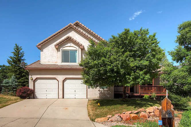Lovely Ashrcroft home located on a cul-de-sac in Peregrine with wonderful mountain views. Lots of space! Great floor plan for entertaining. Finished, walk out basement. Large kitchen with ample cabinet and counter space. Formal living room and dining room are perfect for entertaining! Carpet is only one year old. Main level office with french doors and built-in book cases. Partially updated master bathroom has soaking tub, separate shower and walk in closet. Bay window in master bedroom.Oversized 2 1/2 car garage!
