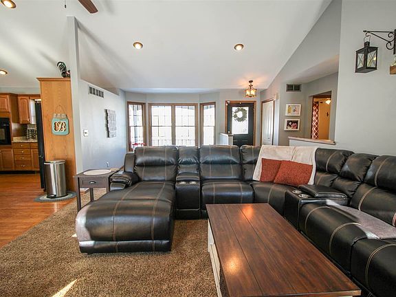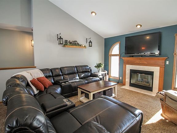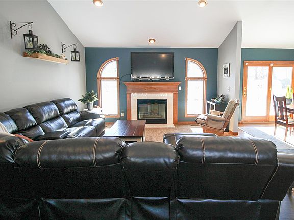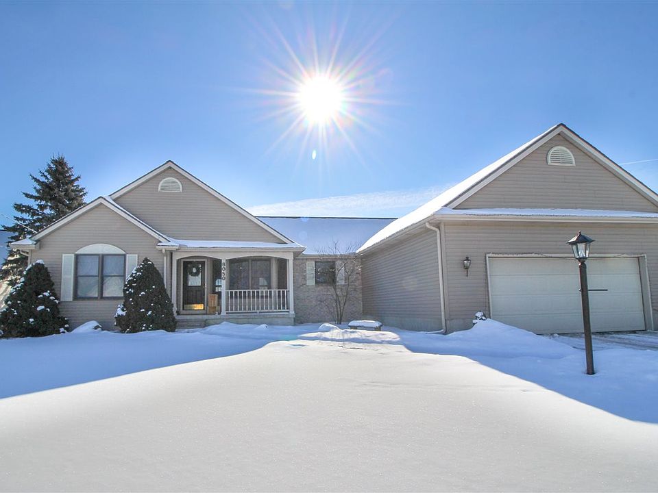 Phenomenal contemporary ranch style home, with over 3,000 finished sq ft of living space! The spacious great room features a gas fireplace, cathedral ceilings, and a perfect playroom or desk space with a bay window. You'll love the large kitchen with granite countertops, Kenmore appliances, oak hardwood floors, and sightlines into the dining area and great room. Natural light floods into the dining area from the French doors overlooking the 600 sq ft composite deck and private half acre yard. Convenient first floor laundry, half bath, pantry, and coat closet are all tucked off of the kitchen, for easy access. The huge master suite has a full bathroom and direct access to the deck. Two additional 12x12 bedrooms are split by a shared full bathroom with two vanities. Full, finished basement features a huge rec room with pool table and wet bar, guest bedroom (no egress), full bathroom, craft room, & home gym. Seller is including a one year home warranty!