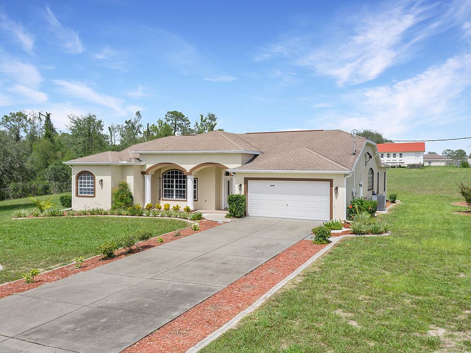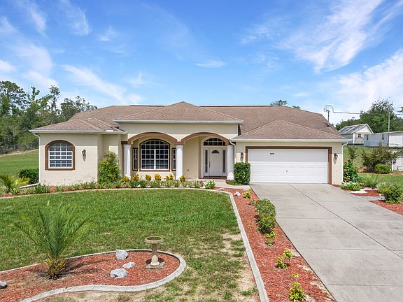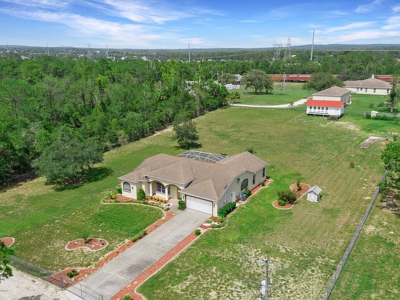 Luxury in the country! This gorgeous home sits on 1.4 acres in the heart of Brooksville. Walking up to the home, take in the gorgeous mature landscaping & cute front porch. Walking inside, the home has an open and split floor plan, with views of the private pool from many different rooms! A gorgeous fireplace takes its place in the spacious living room, located directly off of the kitchen. This gorgeous kitchen has all stainless steel appliances & neutral backsplash! The master bedroom features an en-suite bath & plenty of character. The columns give the room separation, perfect for a sitting or office area with fantastic pool views! The en suite bath boasts his & her sinks, large mirrors, a soaking tub & a walk-in shower. There is also a ready-to-use pigeon coop in the back yard!