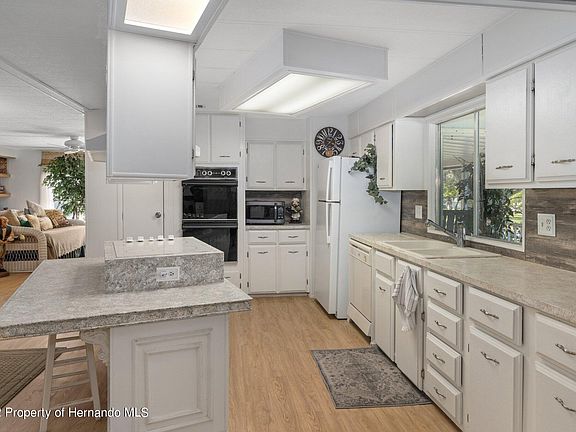 Nestled in the highly desired High Point Community, this home has everything to enjoy the Florida Lifestyle!! This 2br/2 bath nicely updated home comes beautifully furnished and is move in ready! Bright and cheery updated kitchen, spacious living and dining area with lots of built-in storage space. The enclosed lanai with an adjoining area featuring a jacuzzi/hot tub area. Oversized utility/golf cart garage that opens to a fenced in back yard. Low Monthly HOA Fee and YOU OWN THE LAND !!! Community amenities include tennis, pickleball, golf, shuffleboard, horseshoes, bocce, community center/activities and so much more!