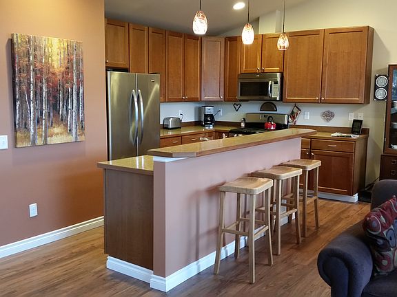 2013 built condo/townhouse in the wonderfully located Hearthstone Subdivision. Featuring 1470 sq/ft with 3 bedrooms, 2-1/2 bath, 2 car garage. Laundry room (with gas or elec hook-up) with office. 6' cedar fenced (178 linear feet) yard with 10x10 shed & ample room for pets and secure play area for your kids. Generator transfer switch for emergency power located near back deck. East view of mountains from large oversized windows in great room. Evening sun on back trex deck. Condo has beautiful upgraded pecan laminate flooring, stainless steal appliances (gas oven), 48" cherry cabinets. ADA toilets, all stainless steal lever handle doors, top of the line Bali up/down cellular shades with darkening in bedrooms and screens for all windows. Upgraded carpets & uber thick padding,throughout all bedrooms. Garage has hot/cold water, including several overhead storage racks and room for a workbench. Upstairs has great room with gas fireplace, kitchen with 8' bar, dining room and a covered Trex deck for mountain views. Also a laundry/office, 1/2 guest bath and master bedroom suite including huge walk-in closet and private master bath with large soaking tub and double head shower that has 12" tile to ceiling. Condo is wired for satellite/cable TV in master, great room & downstairs. Townhouse has high efficiency gas furnace and an external coded touch pad, for garage door. Subdivision is located by Hilltop Ski Area, and Bicentennial Park for hiking, skiing, and biking. Easy access to the Base, U-Med district, downtown, and many shops in the Abbott/Dimond area. This condo subdivision has the LOWEST HOA dues of $130/mth, which includes trash, water, septic and loop snowplowing. Don't miss out on these very low interest rates - it's a no brainer! Buyer's agents, welcome.