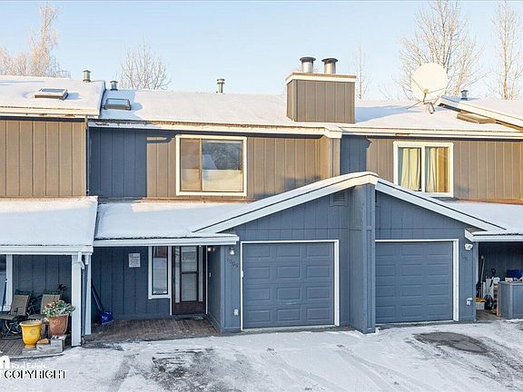 3BD/3BA townhouse-style condo. Primary bedroom on main level w/ ensuite. Vaulted ceilings, fireplace, & large deck off dining area. Fenced yard for privacy/pets. 1-car garage. Enjoy mtn views & quick access to JBER/Umed. Across from Chugach Foothills Park. HOA incl. water, ext. maint., trash, & snow removal. 3 other condos in this community sold for $275K+ this yr--don't miss out!