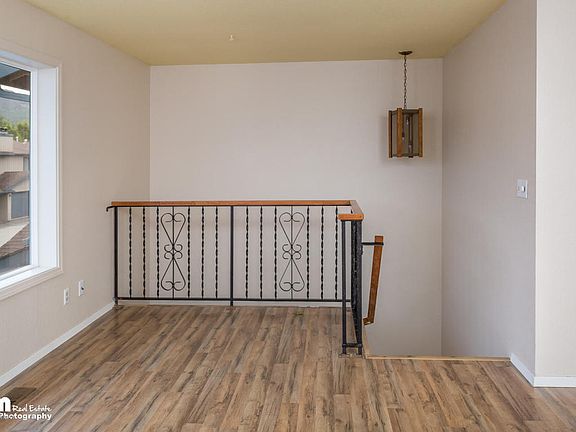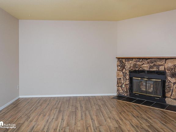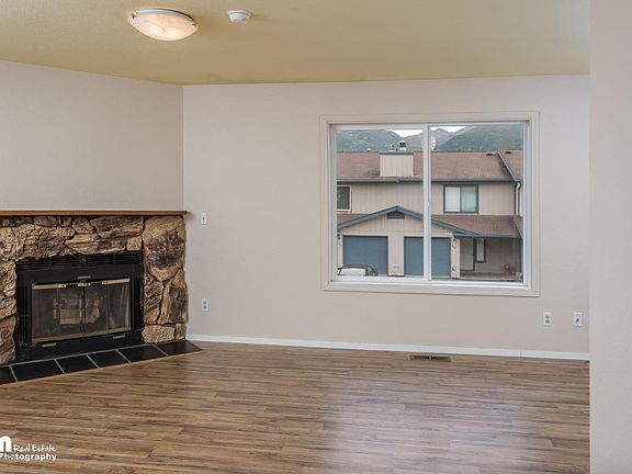 BEST DEAL IN COMMUNITY!! Bring Offers!! Great location close to JBER offers 3 beds and 3 baths! 2015 NEW flooring, kitchen counters, SS Appliances. lighting and more! Vaulted ceilings upstairs in living area with wood burning fireplace. Kitchen w breakfast bar and area dining room w balcony. One bedroom upstairs. 2 bedrooms downstairs. Master bed w private bath & direct access to backyard!!