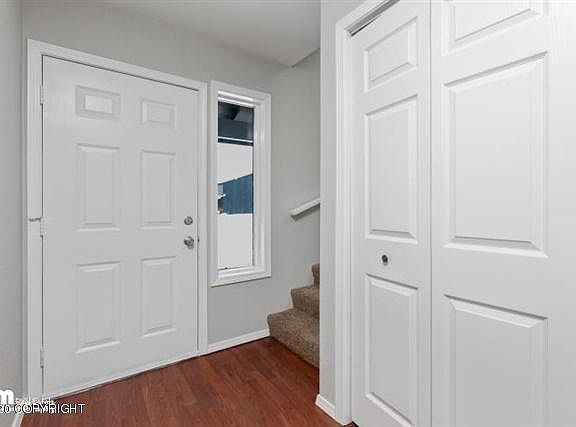 Perfect location! Right across from Chugach Foothills park! Affordable 3 bedroom, 2.5 bath with one car garage and fenced back yard. Enjoy mountain views from master bedroom. All bedrooms upstairs! Perfect starter home!