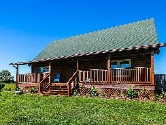 This Custom Built 3 Bed / 3.5 Bath LOG Home sits on a FLAT 6.36AC Fenced Lot with a HUGE Metal Pole Barn 30x104 (Used for Woodworking) that is FULLY Insulated (Spray Foam), Includes Spray Booth w/Blast Proof Exhaust System, AND Attached 15x46 Metal Pole Barn (Used for Offices)---Home OFFERS a Spacious 2700SF of Living Space With Many UPGRADES---1st Floor FEATURES an Eat-in Kitchen w/NEW Laminate Flooring, NEW Dishwasher, NEW Stove-Top (Not Pictured), NEWER Fridge. 1st Floor also FEATURES a Gorgeous Vaulted Ceiling in Living Room, Half Bath w/NEW Laminate AND Vanity, AND Master Suite w/NEWER Laminate, Walk-in Closet, Tiled Shower, AND Jetted Tub--- Upstairs OFFERS 2 Huge Bedrooms w/NEW Carpet, FULL Bath w/NEW Laminate AND Vanity, AND a Loft---Basement OFFERS 2 Finished Rooms (Could be 4th AND/OR 5th Bedroom), FULL Bath, Laundry Room AND Storage Area---EXTERIOR Also Features 25x31 Detached Garage---CONVENIENTLY Located Within 1hr of Lexington AND/OR Louisville, ONLY 20min to Frankfort