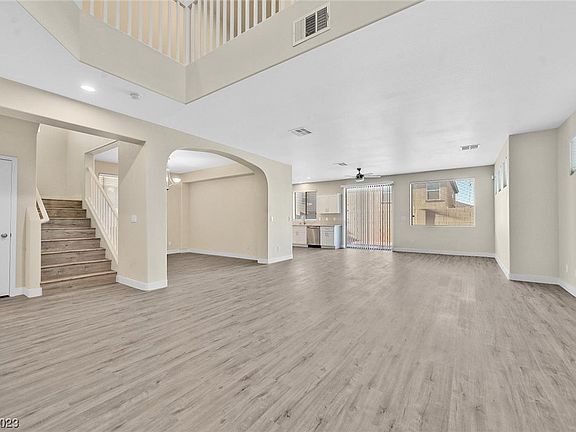 Newly remodeled southwest beauty. Plenty of space with 4 bedrooms(1 downstairs) and a loft area upstairs. Separate Primary Bedroom has an attached sitting area along with a large bathroom offering double sinks, separate tub and shower and also a big walk-in closet. Popular vinyl plank flooring through out. Fresh paint & new window blinds. Quartz counter tops, custom made cabinets & brand new appliances in kitchen. Matured landscaping on front & back yards. Close to community parks, I-215 highway & shopping centers.