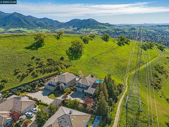Views, Views, Views, overlooking Valley to Delta & beyond! Gorgeous Falcon Ridge Two Story on a private court setting on a premium lot featuring custom free-form in-ground pool with spa. Downstairs bedroom with full private bath. Formal living & dining rooms w/ shutters. Gourmet kitchen features slab granite counters & island, an abundance of all white cabinets, upgraded stainless appliances and opens to large family room featuring cozy brick fireplace with raised hearth, shutters & custom temp controlled dbl door 440 bottle wine cabinet. Spacious primary suite includes vaulted ceiling & sliding glass door to deck overlooking Valley to Delta. Primary bath boasts tile floor, dual sinks, tub & separate stall shower with large walk in closet with custom closet organizer. Large secondary bedrooms. Sprawling backyard oasis is perfect for entertaining with custom hardscape, covered patio, pool, spa, & side yard separate private patio with wooded setting. Owned solar with 3 Tesla power walls. A must see!
