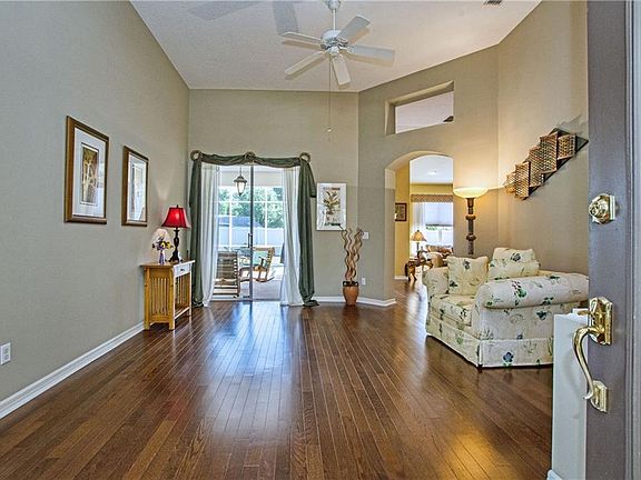 EXCEPTIONALLY WELL MAINTAINED 3 BEDROOM, 2 BATHS WITH A DEN IN THE COUNTRY CLUB OF MOUNT DORA----up to date kitchen cabinets, granite counter tops with stainless steel appliance. Nice size walk in pantry with a very nice accent stain glass insert in a cabinet. From the moment you enter the home you will notice the hardwood flooring and the nice open feel of the lay out of the home. Separate LR and DR and a Family room off the kitchen with a sit down breakfast nook. A large owners suite with a sitting area plus two walk in closets. Master bath features double vanities with granite counter tops, separate shower with tub and water closet. All of the baths have been re-done with up to date nice features. Custom book case with lighting covers the wall in the extended space into the bedrooms. A really nice touch in this home. Nice size bedrooms with large closets, Laundry room with more storage and a two car garage. Entry pavers were installed on the driveway, walkway plus the 30x35 screened lanai. Roof, A/C and Hot Water Heater have all been replaced in 2010. New custom window treatments were installed two weeks ago and they all stay. A truly spectacular home with great value can be yours. Close to shopping and beautiful downtown Mount Dora. Country Club offers a clubhouse, 18 hole Championship golf course, lunches and dinner, pool, racquetball and many monthly events. Come see why the residents love this community. Easy show and look forward to showing you this beautiful home.