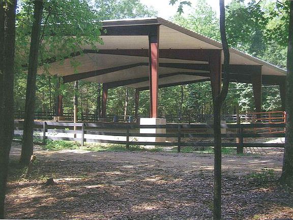 11.63 acre horse farm with 4 bed/3 bath 1.5 story, 2750 sq. ft. home. 4th bedroom upstairs, lg. wooden deck off huge master w/fireplace and sitting area overlooking pool and pastures. 80 x 100 ft. lighted arena, 8 pastures w/wooden fences and electric wire. Inground water network to all pastures. 2-4 stall barns; pole barn w/tackroom & feed room & concrete brick barn with tackroom and attached corral & an additional storage barn.