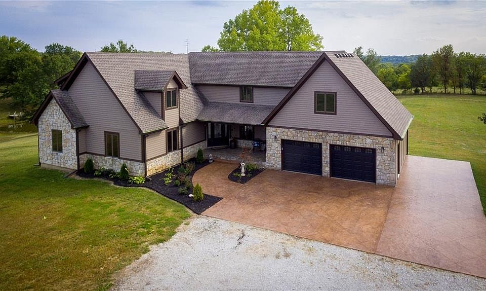 Beautiful home on 4 acres m/l, treed lot, woods for viewing wildlife, Big deck on back with views, Blacktop road, Oak woodwork, stamped concrete patio and porch. Lots of new--flooring, windows, cabinets, light fixtures, plumbing, walk in shower, doors, interior and exterior paint, gutters, bathrooms, and much more! Downstairs has nice open floor plan so you can cook and visit at the same time! Kitchen has all new appliances, big pantry area with pull out drawers, soft close cabinets, so much storage!, door to access garage so you don't have to carry groceries far. Living room has big windows, vaulted ceiling, skylights, and nice view of the deck. Dining area has patio doors that go to nice big deck for bbq, hot tub, or just watching the wildlife out the back. Downstairs also has a nice big room with lots of natural light and huge closet--would make a nice office,/extra bedroom, TV room, formal dining, or a master bedroom without the stairs. Master suite has a huge walk-in closet, big jetted soaker tub, walk in shower with seat and above and side shower heads-big enough for two, patio doors off of master to a 4 X 20 balcony for beautiful views too .Balcony area outside of master bedroom for a nice little reading nook, that overlooks the living room. Right off of master bath is the laundry room with washer/dryer hookups, then into the master closet with lots of room and shelving already installed. There is attic access from closet for more storage and also has access from garage below. Basement has huge room with bathroom that would make a great rec room or family room. extra open area in garage with shelves, big enough for a work out room, shop, or for all your recreational toys! Fenced in back. Don't miss this one --ready to move in! UTV riding park 15 min, 19 min to winery, 10 min to Missouri River boat access, 26 min to liberty, 37 min to NKC! Buyer to verify all measurements, and taxes