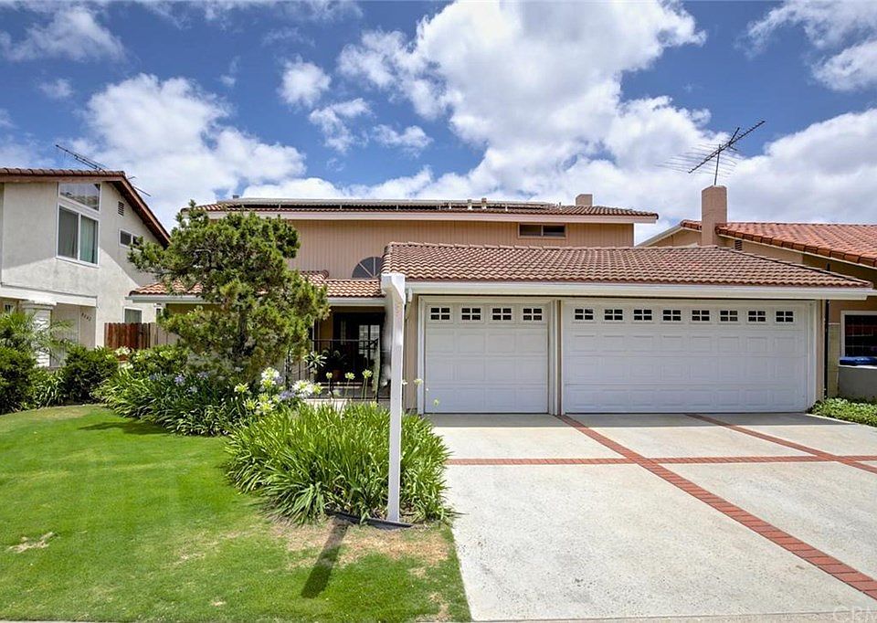 Live the Good Life! Great floor plan in the Landmark tract, one of the most sought after neighborhoods in La Palma. This pool home has 2,285 square feet and features 4 bedrooms, 2.5 baths, family room, separate dining room and a 3-car garage. With its great interior location and charming curb appeal, there's no doubt it will be love at first sight! The private courtyard will welcome you to the double entry doors. As you enter the home the tall ceilings and inviting living room are just the beginning of the treasures you will find in this home. The family room with fireplace, living room and kitchen all overlook the backyard pool and patio. The kitchen has counter seating and a slider to the backyard. The dining room can also be used as an office. The upstairs has new carpeting along with an over-sized master bedroom with private bath and 3 additional bedrooms. Don't forget about the exceptional schools that add to the value of this amazing home, with Luther Elementary, Walker JHS, Kennedy HS and with testing, Oxford Academy. Check out the virtual tour for even more pictures!
