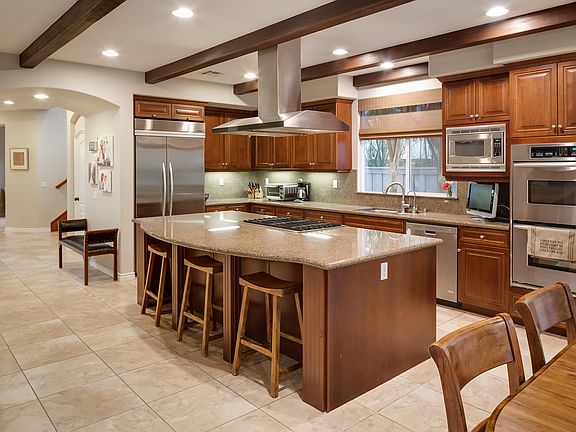 Located in sought after Arroyo Vista. 3 great schools within walking distance, family friendly neighborhood.Gourmet kitchen w/ granite, center island, upgraded stainless steel Kitchenaid appliances, butlers pantry and breakfast nook. Laundry upstairs. New window treatments throughout, including plantation shutters. Beautiful wood ceiling beams in family room/kitchen.Wrought iron staircase.Stone waterfall spa, built in bbq/refrigerator and fire pit. PAID solar panels and approximately $75,000 in upgrades!