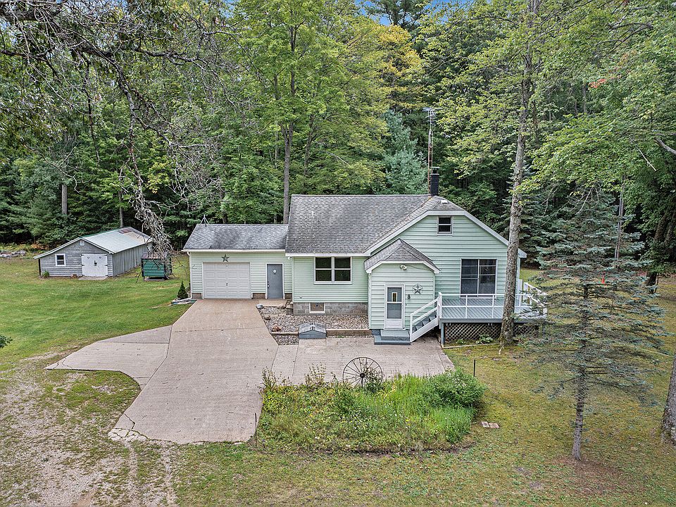 Manistee County - Come and see this park like setting w/3 bedroom, 1 bath home with open floor plan on 10(+/-)acres nestled in the woods and located in close proximity to 1000's of acres of National forest land. Open floor plan with wood finishes in the interior and a built in kitchen wall of cabinets that was repurposed from an old tavern. Comfortable living room with slider to the deck for outside living. Upstairs offers a 3rd bedroom option or storage. Partial basement with additional opportunity for living space or storage. The home has dual heating w/ fuel oil furnace, PLUS outdoor wood burning boiler furnace (and wood on site). One car attached garage adds to the comfort and convenience that this country charmer has to offer. Several outbuildings to suit all your (more) ''sustainable living" needs, including a root cellar, wood storage barn and pole barn with double garage doors, cement floor and space for all your storage/workshop needs. Established garden area and food plot to enjoy the wildlife. Located 10 minutes from local amenities and conveniences. All offers to be submitted by noon on Sept. 10th