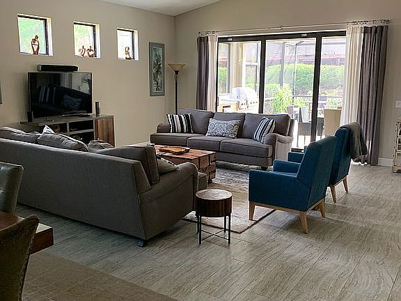 Expanded Version of Popular St. Thomas Model. Oversize 2 Car Garage with Operable Window and Exterior Door; 4 Bedrooms, Gourmet Kitchen w/ Five-Burner Gas Range with outside Venting, plus Built in Microwave and Electric Wall Ovens; Large Walk-in Pantry Closet with Glass Panel Door; Open Plan with Large Living Room and Dining Areas; Tile Floors, Large Lanai with Full Outdoor Kitchen; Heated Salt Chlorinator Pool with Spa; Full Pool Bath with interior and direct access from Lanai; Impact Windows and Doors (No Hurricane Shutters needed) for added sound insulation and security; Wired Security System with Internet Monitoring for 4 Cameras and Thermostat; Wired Sonos Speakers with Smart Phone Wireless Control; Fully Fenced Large Side and Rear Yards; Three Ceramic Tile Baths; Two Guest Bedrooms and Bath are separated from Living Area by Opaque Glass Barn Doors, making a Private Guest Suite; Front Rocking Chair Fenced Paver Patio Area; LED Pendant Track Lighting Dining Area; Large L-Shaped Breakfast Bar; Shaker Cabinets; Pull Down Stair Attic Storage in Garage; Rain Gutters;