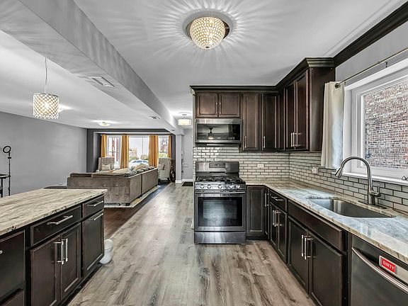 Two words! OPEN CONCEPT. This gorgeous giant Georgian has received a complete facelift and is awaiting you to become its next owner. This large home has an inviting main level. Featuring brand-new large windows on all sides allowing tons of natural light to pour into the space. The refinished dark hardwood floors run throughout and the open concept floor plan makes it the perfect space to entertain. The modern grey paint colors are highlighted by the gorgeous crystal light fixtures. The chefs' kitchen is the perfect eat-in featuring mirrored tile backsplash, marble countertops, an island/breakfast bar, and a custom 4-piece stainless steel appliance set. The engineered hardwood flooring in the kitchen highlight the dark 46-inch espresso soft-close cabinetry. This main level gives you a direct view of the backyard and features a sizable half bathroom for guests. Head upstairs and you'll find your sleeping arrangements. Large bedrooms with hardwood flooring and custom finishes. All bedrooms are large enough to fit king-sized beds and once again allow plenty of natural light to fill the spaces. The main bathroom features a double vanity sink, with a deep tub and spa shower system. Don't worry, it gets better. Head to the basement and you'll find the perfect arrangement of carpeting accompanied by engineered hardwood. Make this space your next workout or yoga space while having ample room for a home theatre or children's play space. This level also features an additional half bathroom with modern finishes along with the utility and laundry room with a nice-sized Samsung washer and dryer. The backyard is a great addition to the home. Large enough to allow the homeowner to entertain in multiple parts of the area. The garage features a front and back "party door" that opens up into a fully fenced backyard and a sizable concrete patio. Recently gut- rehabbed the mechanicals, and roof finishes are newer making this the perfect place for you to come right home and settle in. Located in the historic south side neighborhood of Chatham you'll have access to plenty of shops and stores. Excellent schools like 4A rated Dixon Elementary School, Lenart Elementary, and Simeon Career Academy High School. Don't let an opportunity like this pass you by! Schedule your private showing today! SOLD AS-IS!!