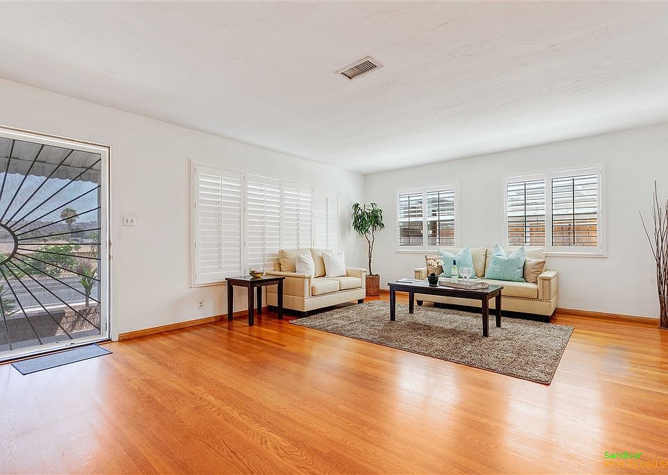 See link for a 360 degree VIRTUAL TOUR and floor plan! - Beautiful Lemon Grove Home! Property features 2 bedroom, 1 bath, 1 car garage, washer & dryer in garage, complete fence for your children to play in large backyard, wood cabinets, tile counter tops, hardwood flooring, and newer dual pane windows with shutters. Central AC unit. BONUS 218 sq ft enclosed sun room.