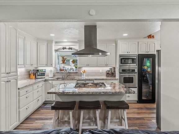 Gas fireplaceKoi pondMature redwoodsAbundant natural lightMaster suiteIsland with range hoodQuartz counters