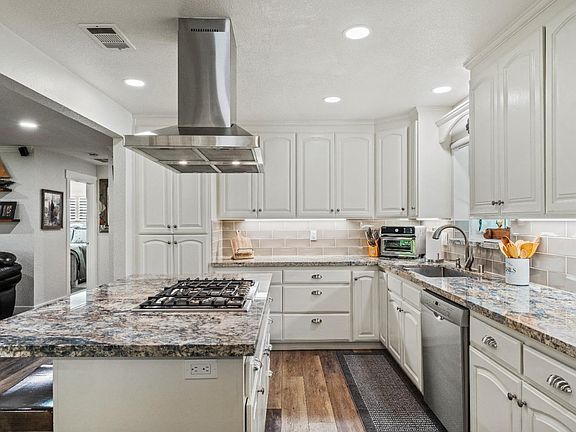 Updated kitchen quartz counters, stainless steel appliances, island with range hood