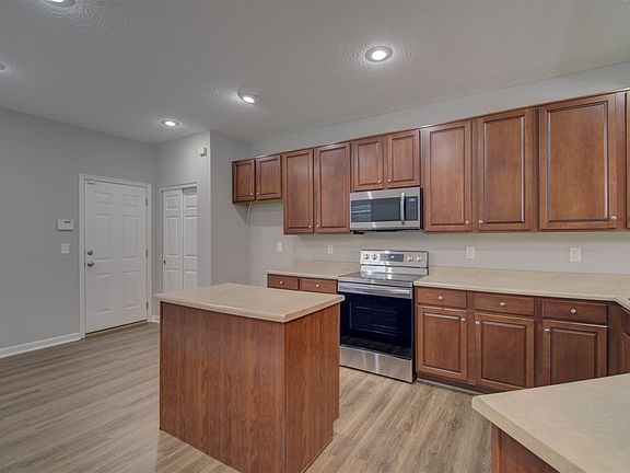 - Kitchen Features: Wood Cabinets, Island, Wood Floors, Pantry, Eat-In