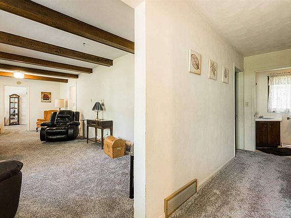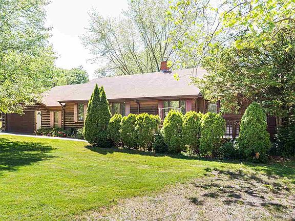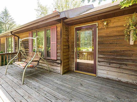 Charming ranch home sits on a double lot in Grand Detour. The foyer leads to a very large living room and two bedrooms with a full bath plus a third bedroom with its own half bath- this room might also be perfectly suited for home office or den, light and bright kitchen with eat-in area AND breakfast bar AND designated dining area, just off the garage you will find an additional den or hobby room offering you even more living space. The basement offers a family room with wood burner, shop, or hobby possibilities. Attached two-car garage, patio door to extra-large two-tier deck, front deck, second garage, and garden sheds. Natural light, attractive wood beam accents in living room, and this setting are ALL wonderful attributes of this property. ESTATE- sold as is.
