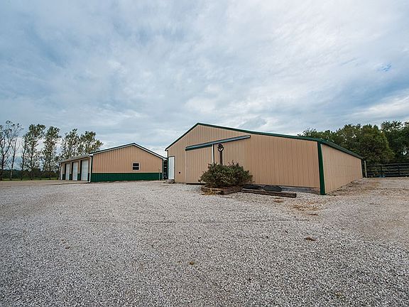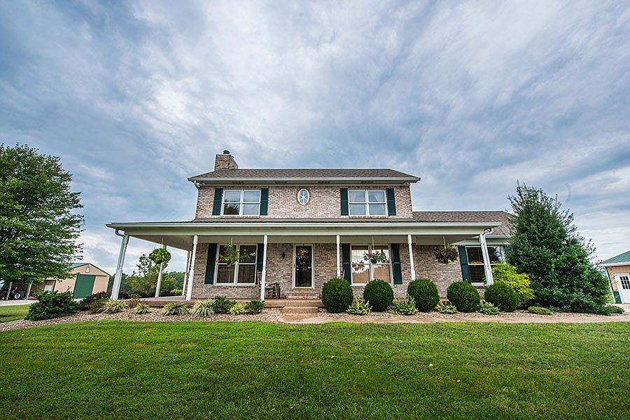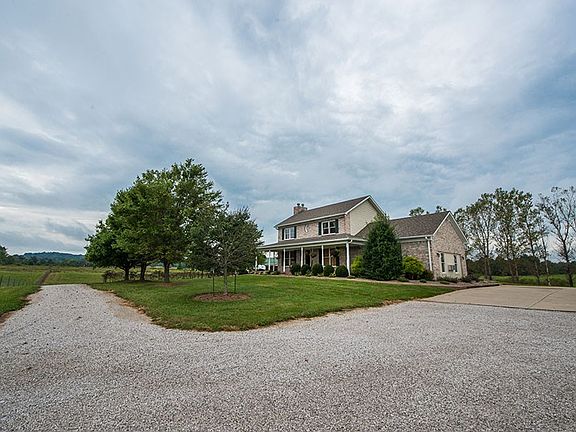 100+/- Acre Horse/Livestock farm with 2 stories all brick home with full finished basement. The home is a 4 bedroom, 4 baths all brick with a 2 sided wrap around porch, concrete patio and wood deck. On the main level there is a living room, kitchen, dining, office, laundry room, recreation room, Florida/enclosed porch, bedroom and 2 bathrooms. The second floor has 3 bedrooms and 2 bathrooms. The finished basement has family room, bathroom and other rooms. In the past the property has been used to run cattle. The property has woven wire fence and well water stations in each pasture/field. There is a 3 car detached garage and 2 barns. The detached garage has concrete floor and measures 30' x 48'. Barn #1 is a 70' x 36 barn with a 70'x 12' covered lean to. The barn has (12) 10' x 12' stalls which have never been used and a hay loft. Barn #2 is 40' x 50' barn with (4) 15' x 12' stalls. There is a 14' x 12' chicken coop. Master bedroom has vaulted ceiling, fire place, carpet flooring and stained wood trim. The master bathroom has double vanity, shower and tile flooring. Kitchen has hardwood flooring, beautiful wood cabinets, island, stained wood trim and more. Dining room has hardwood flooring, ceiling fan, stained wood trim. Office has hardwood flooring, wood stained trim and crown molding. Living room has hardwood flooring, wood stained trim and crown molding. Recreation room has hardwood flooring, built-in bar, wood chair rail. Florida/enclosed porch has tile flooring with many windows giving great natural light. Laundry room has ceramic tile flooring. Bathrooms have ceramic tile flooring and wood stained trim. Upstairs bedrooms have carpet flooring and stained wood trim. Family room, other rooms and bathroom in the basement have ceramic tile flooring. The land is rolling to fairly flat. The home has been tastefully landscaped and is complete with grape vines, trees and so much more.