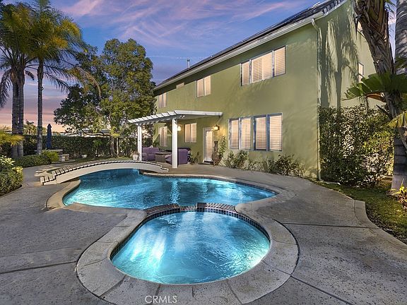 Welcome To The Pride Of Orangecrest that Shows Pride of Ownership....La Crosse Way, Stunning and Spacious, Located in One of Orangecrest's Most Desirable Neighborhood's, with Mountain Views from Almost Every Area within the Home...This Five Bedroom Property Offers Three Levels of Living Space..Upon Entry, the Formal Living Room Greets You, Along with Formal Dining Room Complete with Custom Double Doors with Glass Shelving for Special Treasures. Samsung Stainless Steel Appliances [Refrigerator, Oven, Microwave, Dishwasher] Granite Counters, Built In Desk and Cabinetry Open to Family Room with Fireplace Trimmed with Granite. Downstairs Bedroom , Currently a Library, is Accessed Through Custom Glass Double Doors. Full Bathroom with Granite Counter, Laundry Room with Storage Finalize the First Level. The Balance of Bedrooms are Located on Second Level Along with Bonus Room. The Primary Suite Has Views, Walk In Closet and Standard Closet with Mirrored Sliding Doors. Primary Bathroom is Equipped with Dual Sinks, Separate Vanity with Granite. Hall Bathroom is Adorned with Marble Flooring, Marble Counter with Dual Sinks, Marble Shower Walls...Bedroom Four has Views, Bedroom Five with Mirrored Wardrobe. Level Three was an Option with New Build, Views From Each End of Room, is Combination Den /Workout Room. The Backyard Can Be a Tranquil and Peaceful Refuge, No Neighbors Looking at Yard from Behind! Salt Water Pool with "Bridge Over Calm Waters", Spa, Covered Patio, Palms, Fruit Trees, Various Plants Give a Parlike Atmosphere...AND REMEMBER, SOLAR IS PAID!!