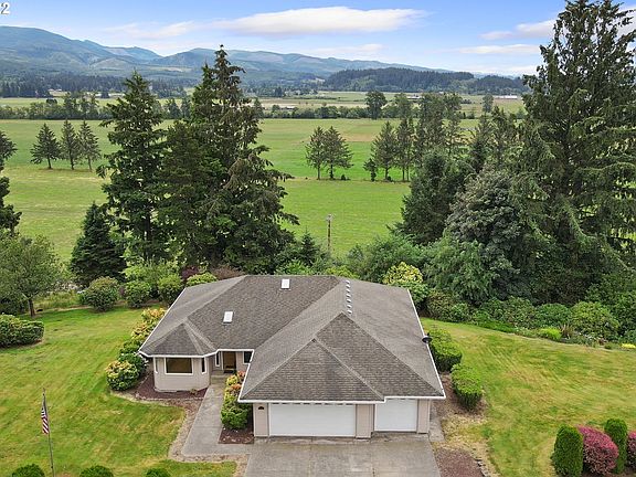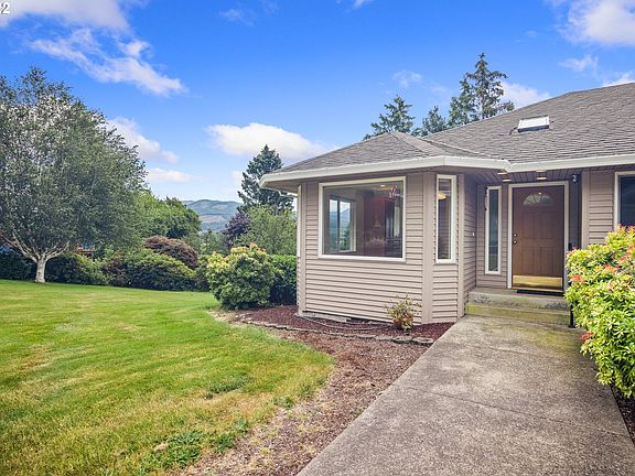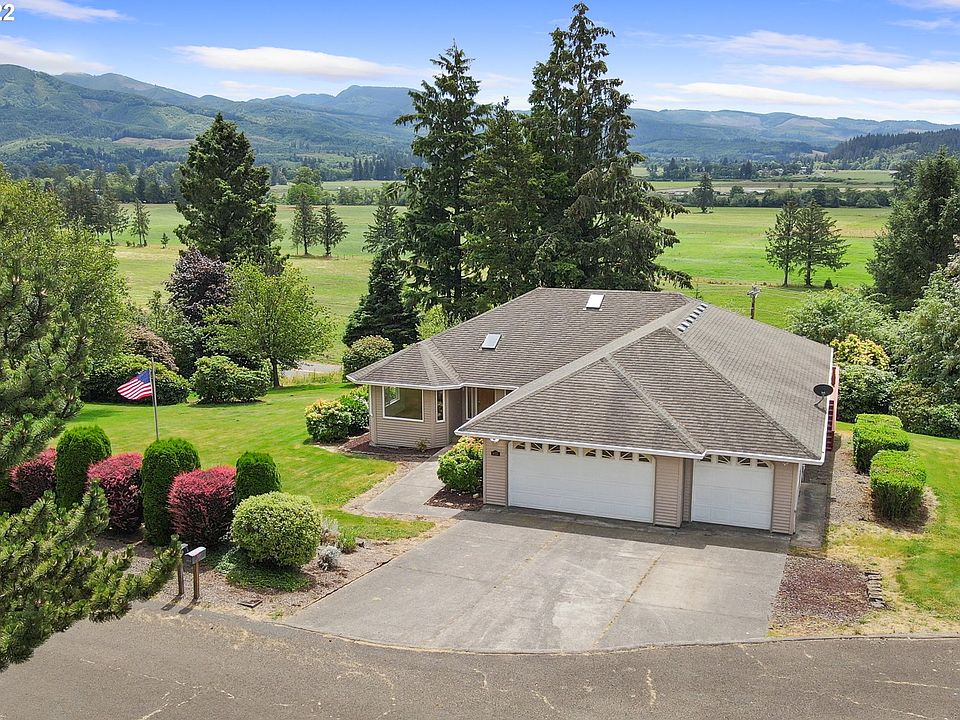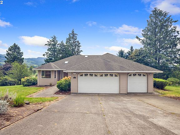 Stunning panoramic valley views from this beautiful one level home situated on 1.26 acres in upscale neighborhood. High ceilings & open living area w/ private deck to relax & entertain! Spacious kitchen opening to breakfast nook w/ many windows & natural light. Grand master en-suite w/walk-in closet, full bath & deck access. 2 car garage plus additional shop area or space for your boat & toys. Plenty of room to park an RV too.Go fishing or kayaking at the nearby Trask River! 8 miles to beaches!