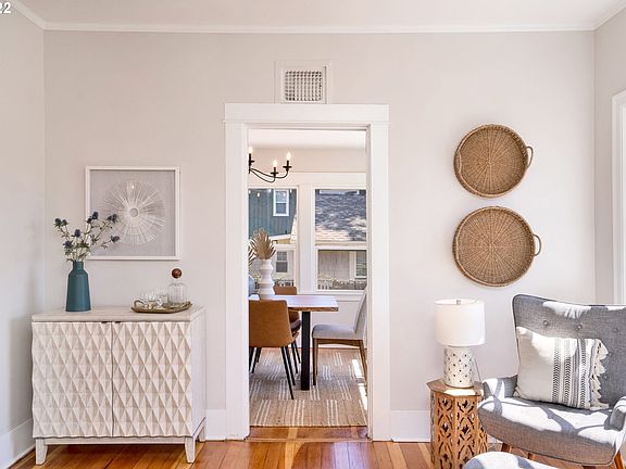Turn key BUNGALOW w/the perfect blend of MODERN touches & original 1925 charm! QUARTZ counters, SS appliances & new lights. Updated bathrooms, original HARDWOOD in both upper & main floors. Master en-suite w/ half bath & room for pocket office or use as BONUS living room. 2 main floor bedrooms w/ high ceilings, large sunroom to enjoy our PNW mornings & 500 sqft. BASEMENT w/ 7.4' ceilings $$$ Covered front porch, detached GARAGE, HUGE oversized lot. Add detached ADU(s) buyer to verify. Come see!! [Home Energy Score = 8. HES Report at https://rpt.greenbuildingregistry.com/hes/OR10205110]