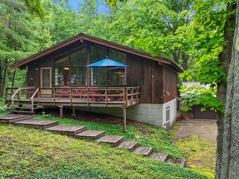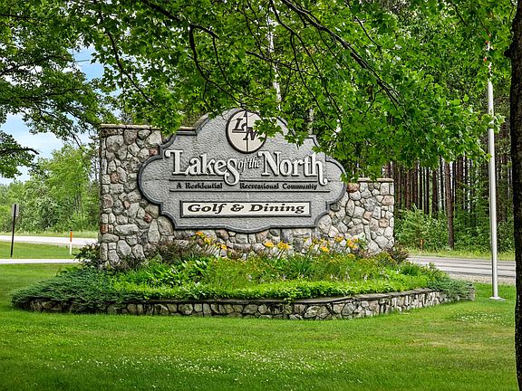 LAKE OF THE NORTH. This place will not disappoint. Welcome to your Up North retreat, Fulltime Home or Vacation Rental. Home backs up to thousands of acres of land w/trails designated as common ground for members only. This property also backs up to State Land for fantastic hunting a rare find! Use the wood stove for an alternate heat source. Extra rooms in the walk-out basement for all your family and friends! Take your golf cart down the path to the golf course/Settings restaurant. Enjoy all the amenities Lakes of the North has to offer. Indoor swimming pool, Club Houses, Lakes, Campground, Snowmobile/ATV/nature Trails. This property also has a large garage for all your toys. New floor & carpet 2016-New pellet stove-New garage door opener,110-amp service 2017-New metal roof on garage 2021, New water pump 2022. Many items stay with home. See furniture list in documents.