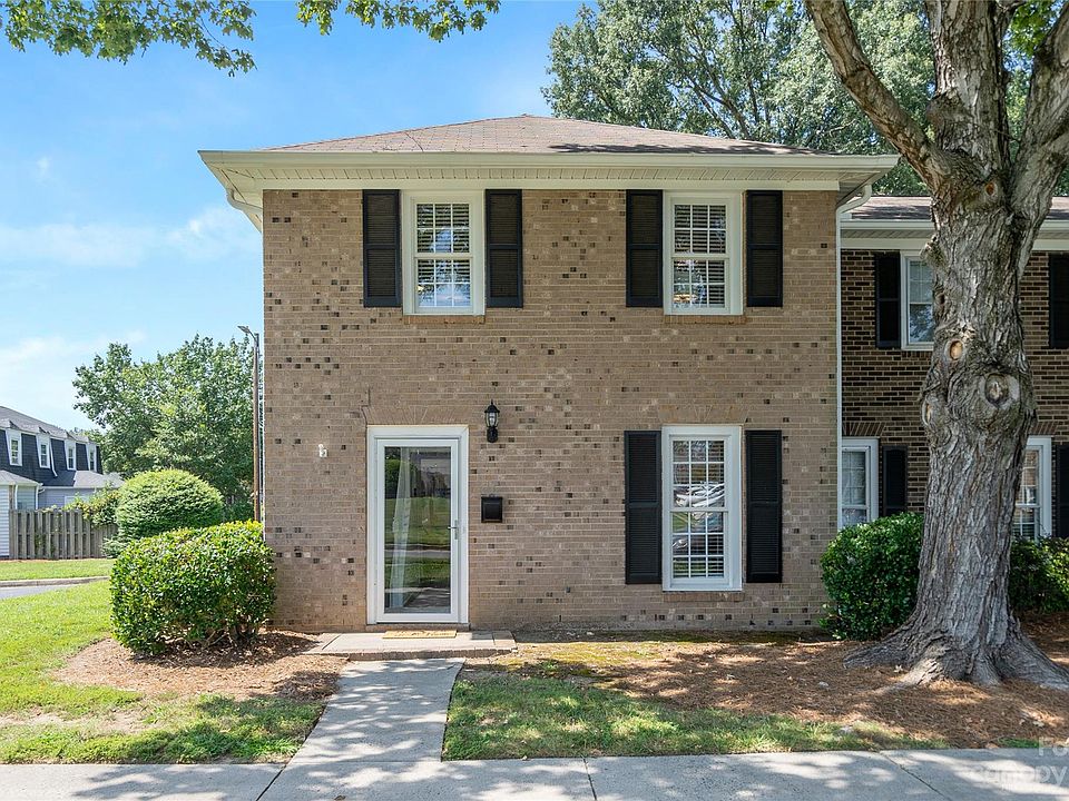 Stunning full brick Georgian townhome located on the beautiful 26 acre campus of Sharon South. This desirable end unit has been completely remodeled inside and offers two primary bedrooms. Brand new LVP flooring on main level, carpet on second level/stairs, recessed lighting, interior paint, two inch blinds, light fixtures, vinyl insulated window sashes, and door handles. Open layout with abundant natural light throughout. The renovated kitchen boasts brand new quartz countertops, custom subway tile backsplash, and stainless steel appliances. The refreshed kitchen cabinetry offers a perfect blend of retro/vintage and modern accents. Convenient remodeled hall bathroom on main level with new vanity, quartz countertops, commode, and fixtures. Two spacious bedrooms upstairs, each with brand new private bathrooms. Upgraded covered patio and low maintenance fenced yard. All these renovations mean more time to relax at the community pool and clubhouse! Owner occupants only. Agents are owners.