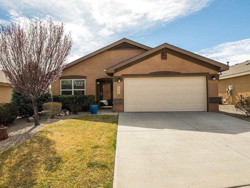 Welcome to this lovely single story home in Ventana West . 3 bed 2 Bath Home! This amazing home has a great Open Layout from Living Area and Kitchen. Kitchen offers corian counter tops and ample cabinet space. Master suite is separate from the other rooms, and features a nice walk-in closet and generous master bath with garden soaking tub and separate shower. Most Amazing Views; Beautiful Front Landscaping with Lawn, Trees & Bushes; Outstanding Landscaped Backyard with Covered Deck, Lawn, Rosebushes, & Views of Open Space to Enjoy New Mexico Sunsets. Also Near a Community Park .! A perfect place to call home!
