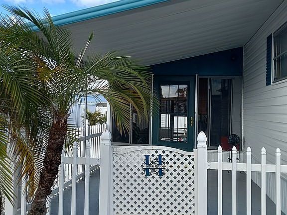 Come own a slice of paradise in this 55+ community. With owned land, two bedroom, one and a half bathrooms won’t last long. Priced to sell. Taxes under $1000, Carrier AC and heat done in 2024. Membrane roof resurfaced in 2025. Desert Scape landscape, double driveway. With a beautiful Sunroom attached, carport on the other side nice second drive, patio area near sunroom. Plenty of room for collectibles, two storage sheds come and check it out. You won’t be disappointed. HOA fees under $85. Amenities include, Clubhouse , Pool and coming soon Pickleball courts. Active Winter community.