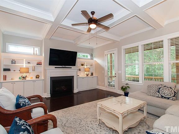 Gorgeous craftsman style home in the heart of N Raleigh, freshly painted int & ext, hdwds in main liv areas, coffered & trey ceilings, custom built-ins surround gas log frpl. Gourmet kit w/SS appl's, island/bar, granite counters & custom cabs. Elegant formal DR. 1st flr MB w/hdwds, glamour bath & WIC. Full guest suite on main level. Bonus rm, mudroom w/built-ins; screened porch, patio & rocking chair front porch. HOA incl ext yard maintenance. Convenient to Whole foods, North Hills Mall, dining, 540 & 440