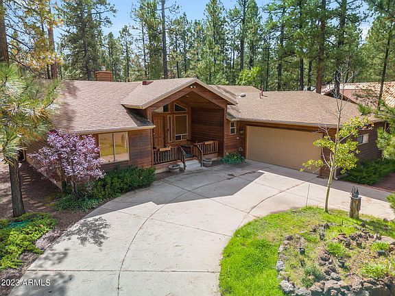 LARGE LOT in a desirable PTCC location! Jackson Lake, Pinetop CC, Bike trails just around the corner. Built 1998 with full time living in mind. 3BR 2BA split OPEN floorplan. Inviting Single level, BRIGHT dining bay surrounded by windows with an extra large back deck and a cozy front deck. Beautiful knotty pine high ceilings and a stunning gas fireplace in great room. Extra LARGE Primary Suite with high ceilings, window seat, walk-in closet, and LOADS of custom builtins. Raised panel TIMELESS NATURAL stain cabinets thru-out PLUS extra built-ins in each room. Chefs kitchen w/gas, dble ovens & brkfst bar Large side entry garage with circle drive. TONS of storage. Separate Laund/Mud room~berber carpeting and tile floors. ALL contents convey with the sale. Owner/Agent NEW ROOF 2023!