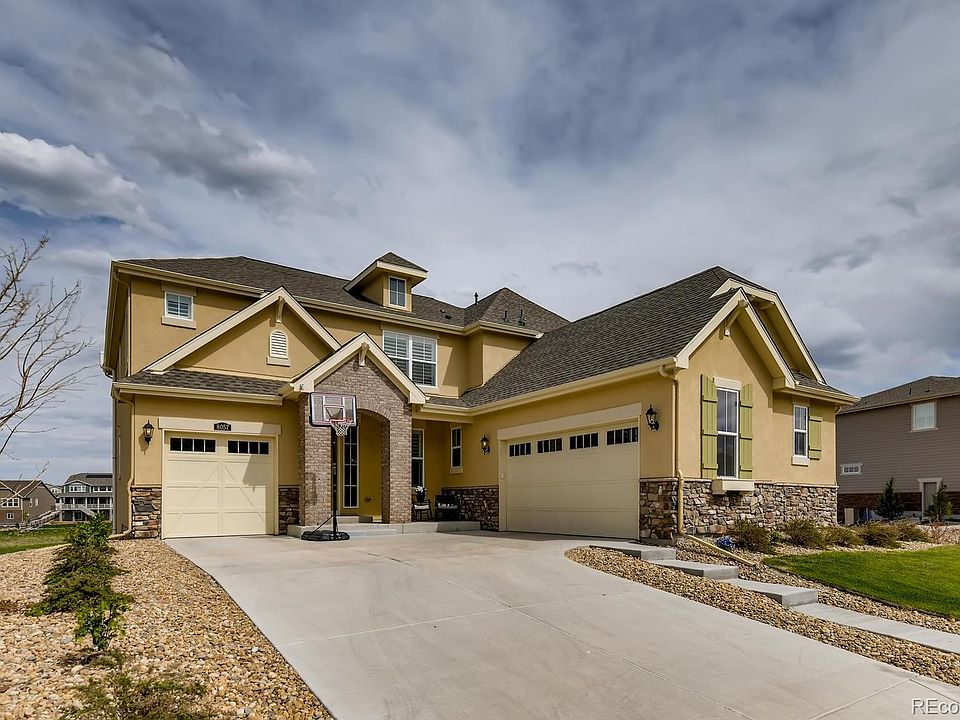 Great golf course living in Blackstone! This home is stunning, with beautiful golf course views!!! This location is PRIME -backing to the 13th hole, part of "The Gauntlet." Living here, you will love the expansive covered deck, and a perfectly positioned big homesite, so you can enjoy all of that wonderful outdoor Colorado lifestyle! This beautiful 3400+ square foot luxury residence features a main floor study, large gourmet kitchen, roomy loft area, convenient upper laundry, beautiful master suite, and 3 car garage. The large walkout basement is unfinished and perfect for lots of storage, or for designing your own finished basement area. This is a great home for entertaining and a golfers dream! Living here you will love the efficiency of the solar energy system, and wifi enabled sprinkler system. Blackstone is loaded with amazing community amenities, including pool, trails, clubhouse, fitness center, parks and more! This location is close to schools, DIA, Southlands, E470 and more!