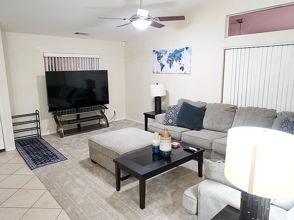Welcome to your perfect retreat in a secure, gated community! This beautifully fully furnished appointed 2-bedroom, 2-bathroom home offers the ideal blend of comfort, space, and modern convenience. Step inside to discover a bright and open floor plan featuring a large dining room area perfect for entertaining family and friends. The full kitchen is equipped with appliances, designed to make cooking a pleasure whether you're preparing a quick breakfast or hosting a gourmet dinner. All new cooking pots, pans, knife set, plates, cutting board, all in one air fryer, etc is provided. Relax and unwind in the spacious living area, complete with a brand new stunning smart 75-inch screen TV, in the main living room providing the ultimate entertainment experience including surround sound. Also fast wifi with for all your video gaming and remote work needs. Both bedrooms are generously sized, with plenty of natural light and ample storage, while the two full bathrooms offer updated fixtures and a clean, modern design. The master bedroom has a 65-inch TV. Things to note: 30 day minimum stay and up to 365 days. Deposit $1500 Cleaning fee $250 3rd bedroom "the smallest bedroom"/garage are closed off and not included in the rental agreement. Utilities are paid by the landlord, however, landlord pays the first: Gas bill $40 Water bill $70 Wifi: included Electricity bill $350 "June-Sept" Electricity bill $150 "Oct- May" Anything over will be paid by the tenant. These are the average utility bills by tenants. No street parking, 2 designated driveway parking assigned. No Pets Credit/background check needs to be completed