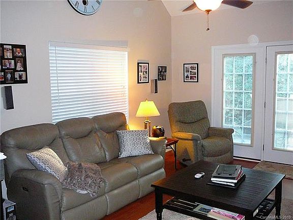 This is a spacious and well maintained 2 bedroom,2 1/2 bath end unit with loft. One car attached garage. Granite counter-tops in kitchen. Fireplace with gas logs divide dining room and family room. Vaulted ceilings. Storage area in garage. Carpet was replaced last year. Painted last year. Back patio overlooks wooded area. Seller provided home warranty through America's Preferred. HOA installed roof on all units about 3 years ago. Community pool,sidewalks and even a pond. Homes sell very quickly in this subdivision. Close to retail shopping,restaurants and I-77. Hurry,this home will not last long. Surround sound speakers to remain with full price offer.